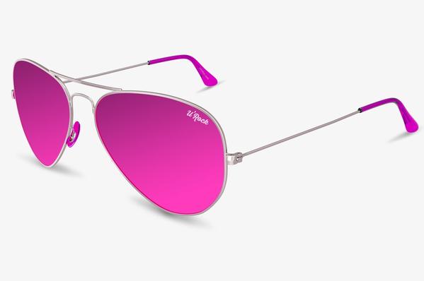 Todo un clásico, pero reinventado por URock: armazón plateado, de estilo "Aviador"; y micas con efecto espejo, de vibrantes tonos rosas. ¡El toque de color que estabas buscando!